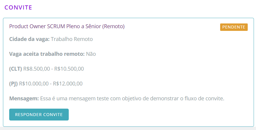 Ao receber um convite de processo seletivo da empresa, um chat será criado entre você e a empresa. Verifique na parte Mensagens:
